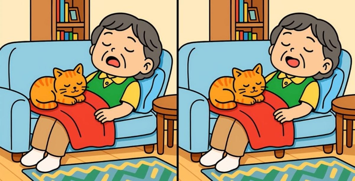 Klaar om jezelf te testen? Hier zijn twee illustraties: ze tonen een vrouw en een kat die op een bank slapen. Op het eerste gezicht zien de scènes er precies hetzelfde uit, maar er zijn drie kleine verschillen.