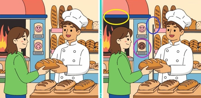 Klaar om jezelf te testen? Voor je liggen twee foto’s van een bakker en brood. Op het eerste gezicht lijken ze precies hetzelfde, maar de kunstenaar heeft drie kleine verschillen verborgen. Kun jij ze vinden in slechts 25 seconden? Neem de tijd en test je oplettendheid.