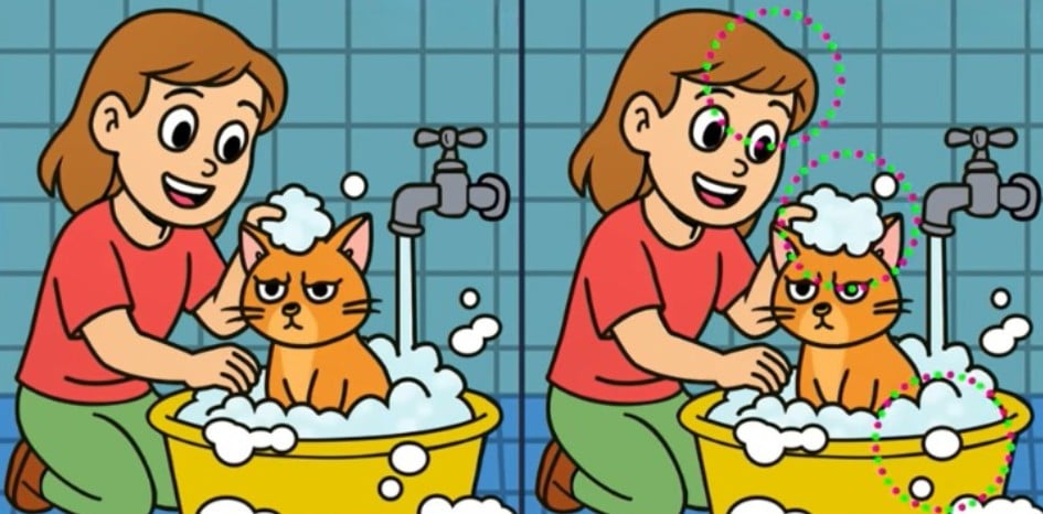 Klaar om je opmerkzaamheid te testen? Kijk eens naar twee foto’s van een meisje en haar kat. Op het eerste gezicht zien ze er precies hetzelfde uit, maar er zitten drie kleine verschillen in de foto’s verborgen.