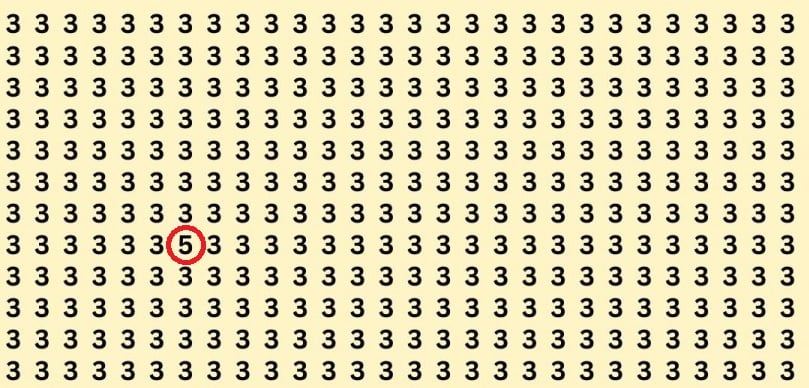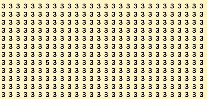 Puzzels en optische illusies helpen om de hersenen te trainen op dezelfde manier als sporten het lichaam traint. Daarom is het een goed idee om zulke puzzels elke dag op te lossen – het is genoeg om er minstens een klein beetje tijd aan te besteden. Het volgende raadsel kan zelfs de meest oplettende mensen in verwarring brengen – je moet het getal 5 vinden tussen de drieën.
