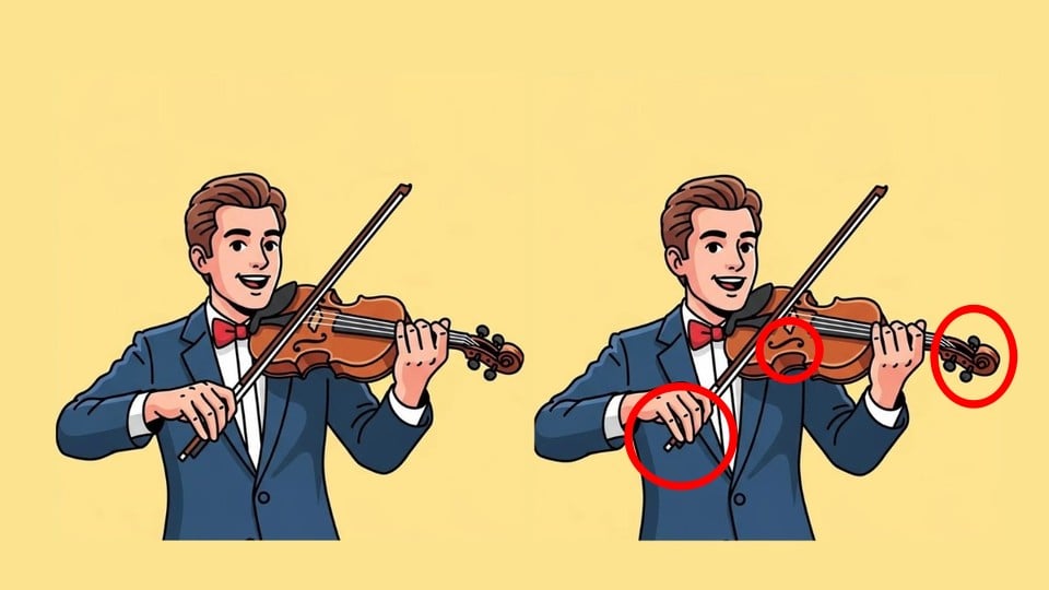 Klaar voor een nieuwe uitdaging? Kijk eens goed naar de twee afbeeldingen met de violist. Op het eerste gezicht lijken ze identiek, maar dat is een illusie – er zitten drie kleine verschillen tussen verborgen. Kun jij ze allemaal zien in 37 seconden? Het is tijd om je oplettendheid te testen!