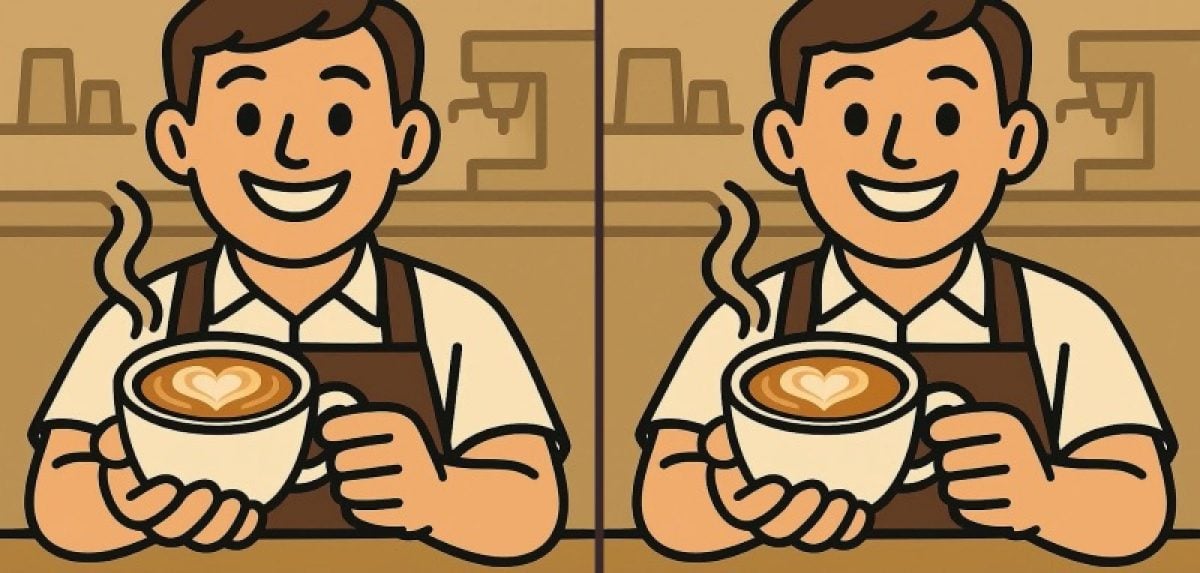 Klaar om je observatievermogen te testen? Kijk eens naar twee foto’s van een barista. Op het eerste gezicht lijken ze identiek, maar er zitten drie subtiele verschillen tussen. Kun jij ze binnen 45 seconden ontdekken?