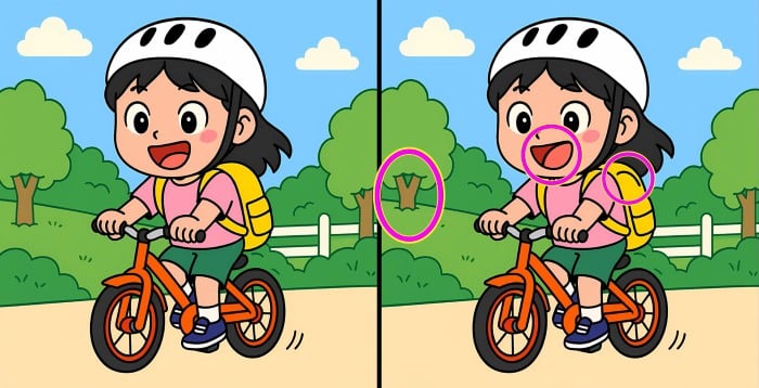 Klaar om jezelf te testen? Kijk goed naar de afbeeldingen van het meisje op de fiets. Er zitten drie verschillen in en het is jouw taak om die zo snel mogelijk te vinden.