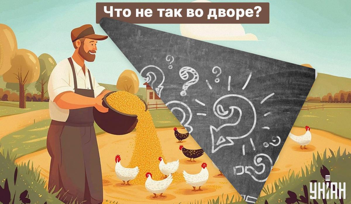 Deze afbeelding toont een gezellig boerenerf met kippen, die door de eigenaar worden gevoerd met geselecteerd graan. De afbeelding ziet er idyllisch uit, maar er zit een ernstige fout in. Splits de afbeelding in delen en gebruik je goede denkvermogen, buitengewone verbeeldingskracht en gezond verstand om het antwoord te vinden. En vergeet niet dat je niet meer dan 5 seconden hebt.