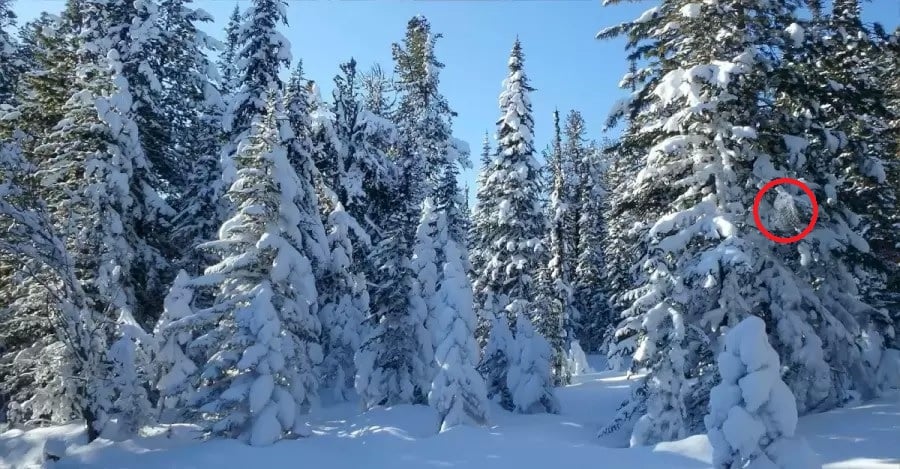 Ergens in deze winterse natuur houdt een uil zich schuil. Op het eerste gezicht lijkt het alsof er geen dieren in beeld zijn, maar dat is niet het geval. De vogel is zo goed gecamoufleerd dat alleen oplettende mensen hem kunnen zien.