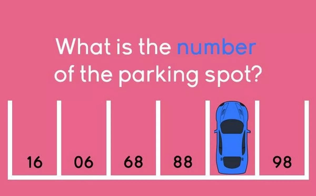 Je hoeft alleen maar naar de nummers op de parkeervakken te kijken en te vertellen welk nummer onder de blauwe auto verborgen zit.