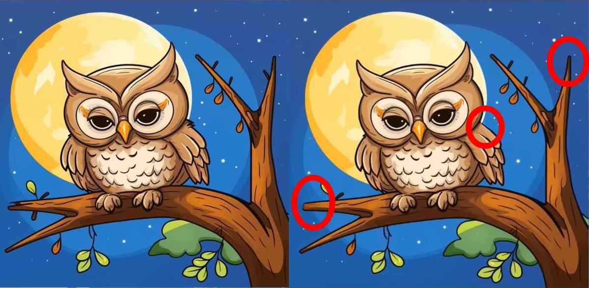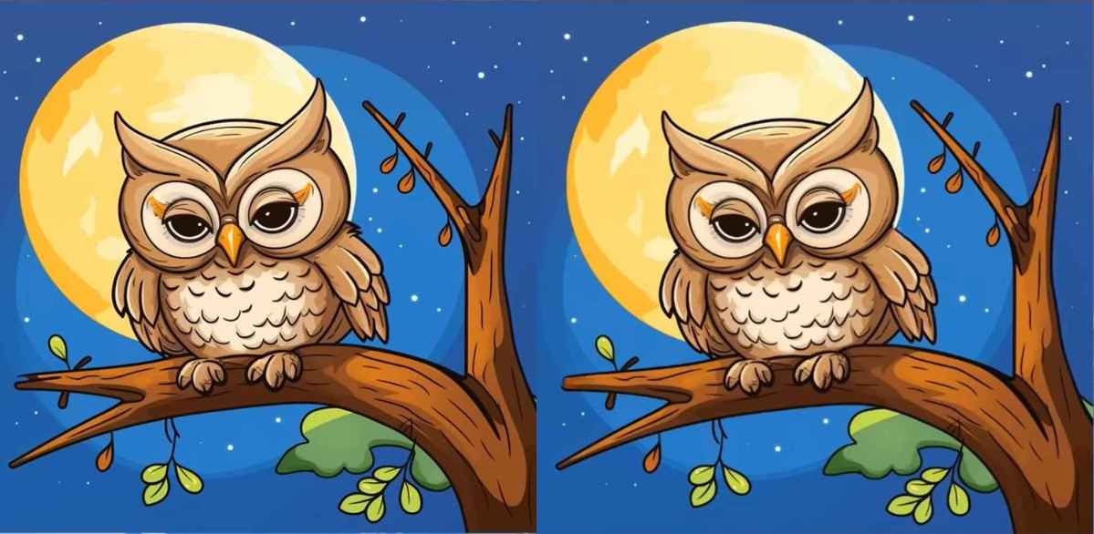 Voor je zie je twee afbeeldingen van een uil in een boom. Op het eerste gezicht lijken ze precies hetzelfde, maar dat is niet zo – er zitten drie subtiele verschillen tussen verborgen.
