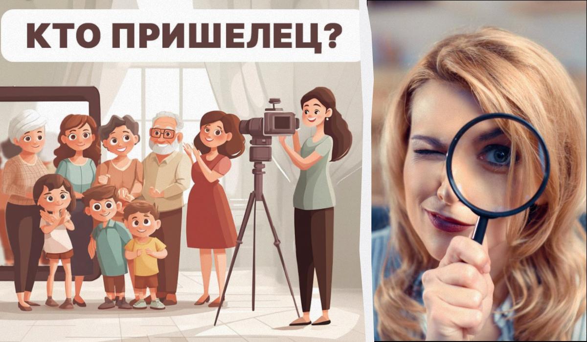 Hieronder zie je een afbeelding van een gezin dat voor een gezamenlijke fotoshoot kwam. Kun jij de subtiele aanwijzingen vinden die de alien ontmaskeren die tussen de gewone mensen schuilt?